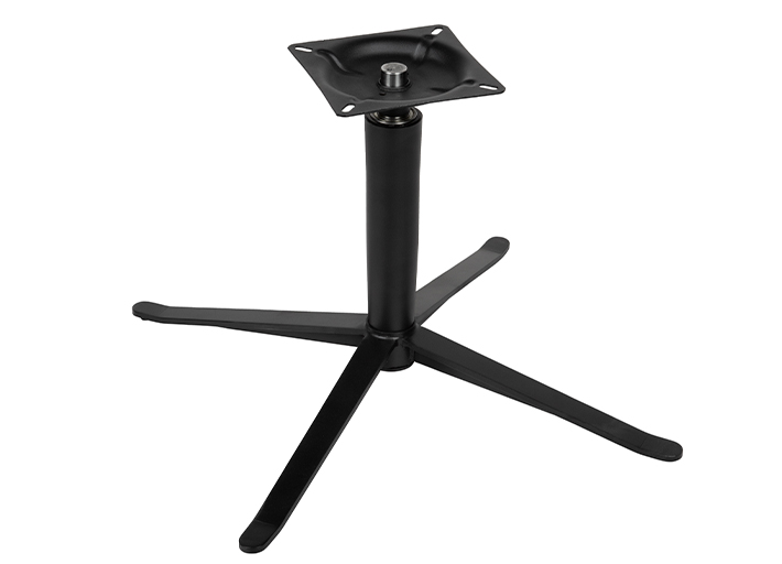 Iron base in black powder coated, 360 degree rotary function and automatic return.