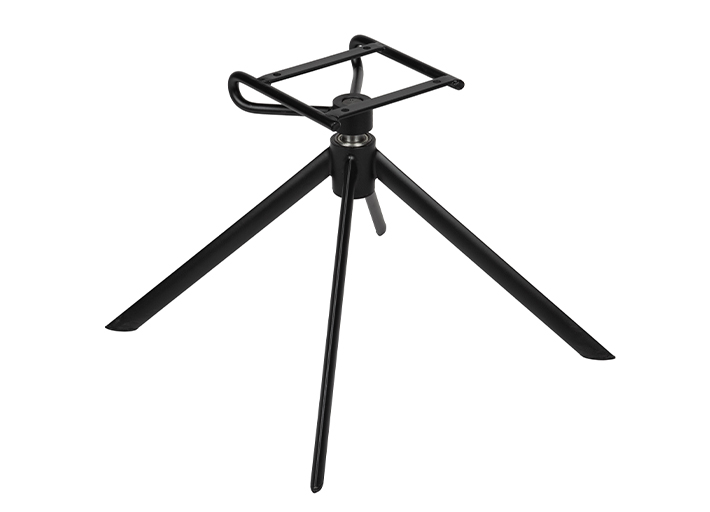 Iron base in black powder coated, 360 degree rotary function and automatic return.